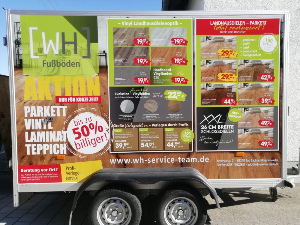 Dazu zählt die Produktion unteschiedlichster Werbemittel wie Beschilderungen, Leitsysteme, Beklebungen von Fahrzeugen sowie die Veredelung von Textilien für Firmen, Vereine und Privatkunden.